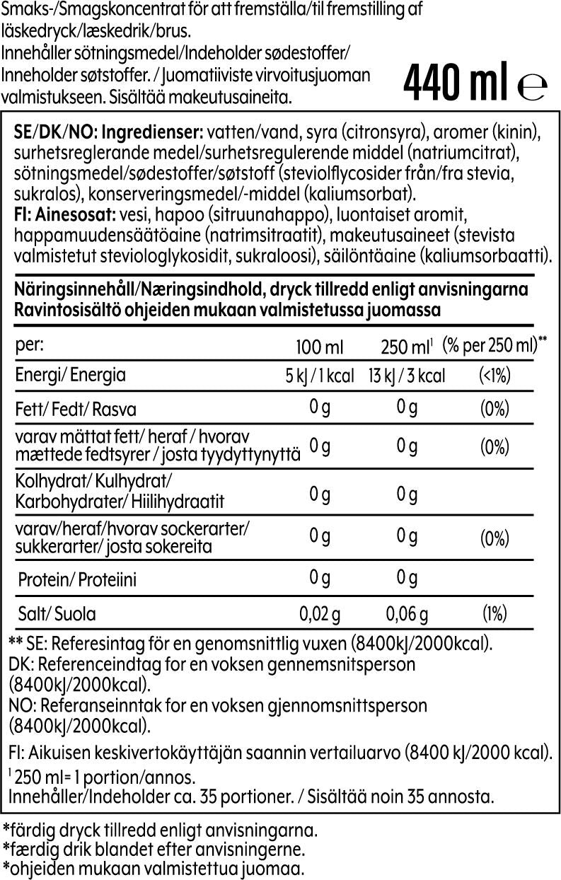- Smakskonsentrat for kullsyreholdig vann som gir deg en tørsteslukker med forfriskende smak av tonic.